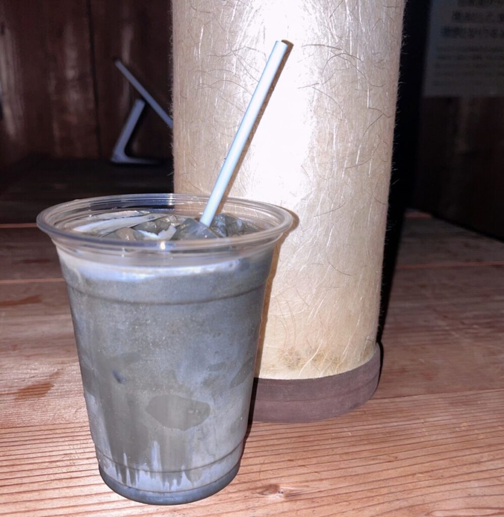 こちらのお写真は、「闇夜の竹炭ラテ」です。