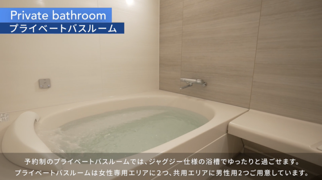 - ・疲れた体をゆっくり休めることのできる、ジャグジー仕様のプライベートバス(予約制)